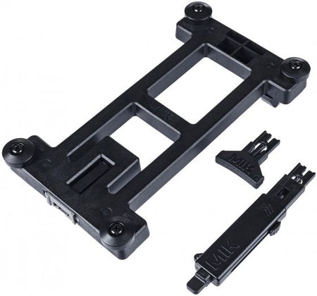 Diese schwarze MIK 2.0 Adapterplatte ist 21 cm lang, 12 cm breit und 3 cm hoch. Sie ist abschließbar und wird inklusive Schlüssel geliefert.