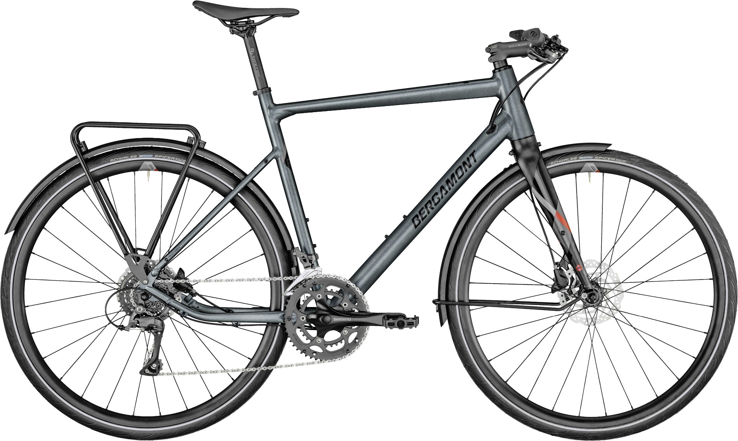Ergonomisches Cockpit: Die Syncros-Komponenten (Sattel, Lenker, Vorbau) sorgen für eine sportliche, aber nicht zu gestreckte Sitzposition, sodass du den Verkehr stets im Blick behältst.
