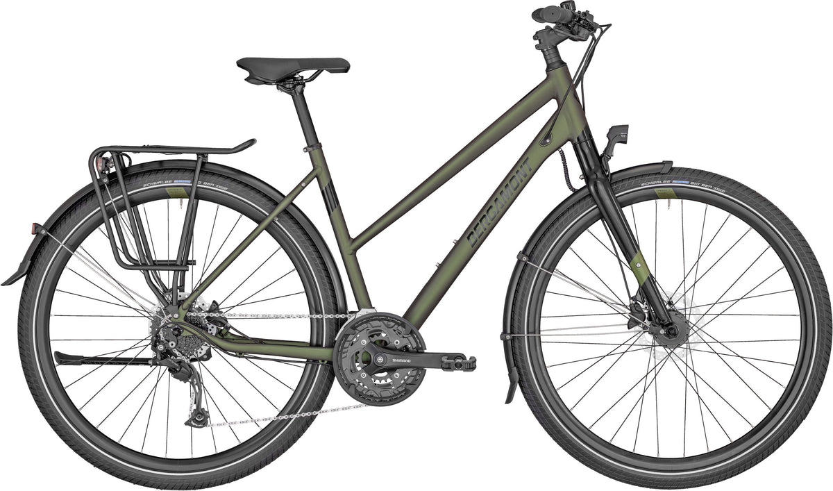 Das Vitess 5 ist die perfekte Wahl für Puristen und Pendler, die ein wartungsarmes, schnelles und leichtes Trekkingrad suchen. Durch den konsequenten Verzicht auf eine schwere Federgabel und den Einsatz einer präzisen Aluminium-Starrgabel bietet das Bike ein direktes Lenkverhalten und spart ordentlich Gewicht. Den Komfortfaktor übernehmen hier die voluminösen Schwalbe-Reifen, die Unebenheiten auf Radwegen einfach wegschlucken. In der markanten Farbe Sunrise Green ist es zudem ein echter Blickfang im Stadtbild.