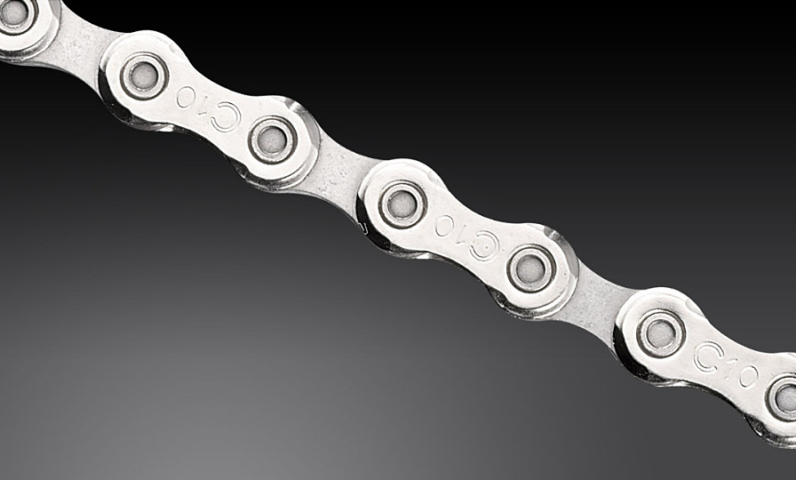 Geräuscharmer und flüssiger Lauf werden erreicht durch die perfekte Bearbeitung der Schaltprofile an den Kettenlaschen.
