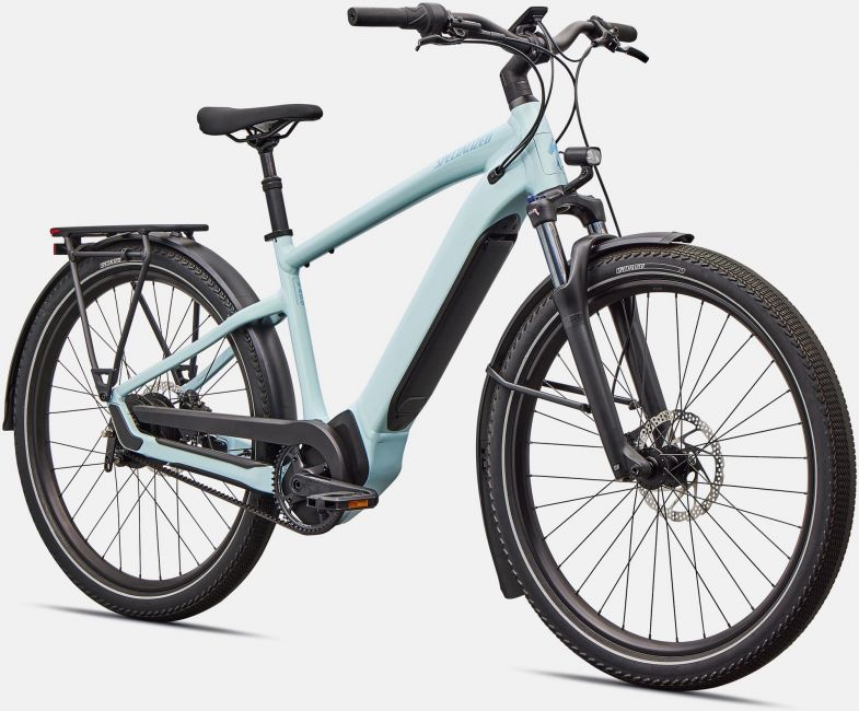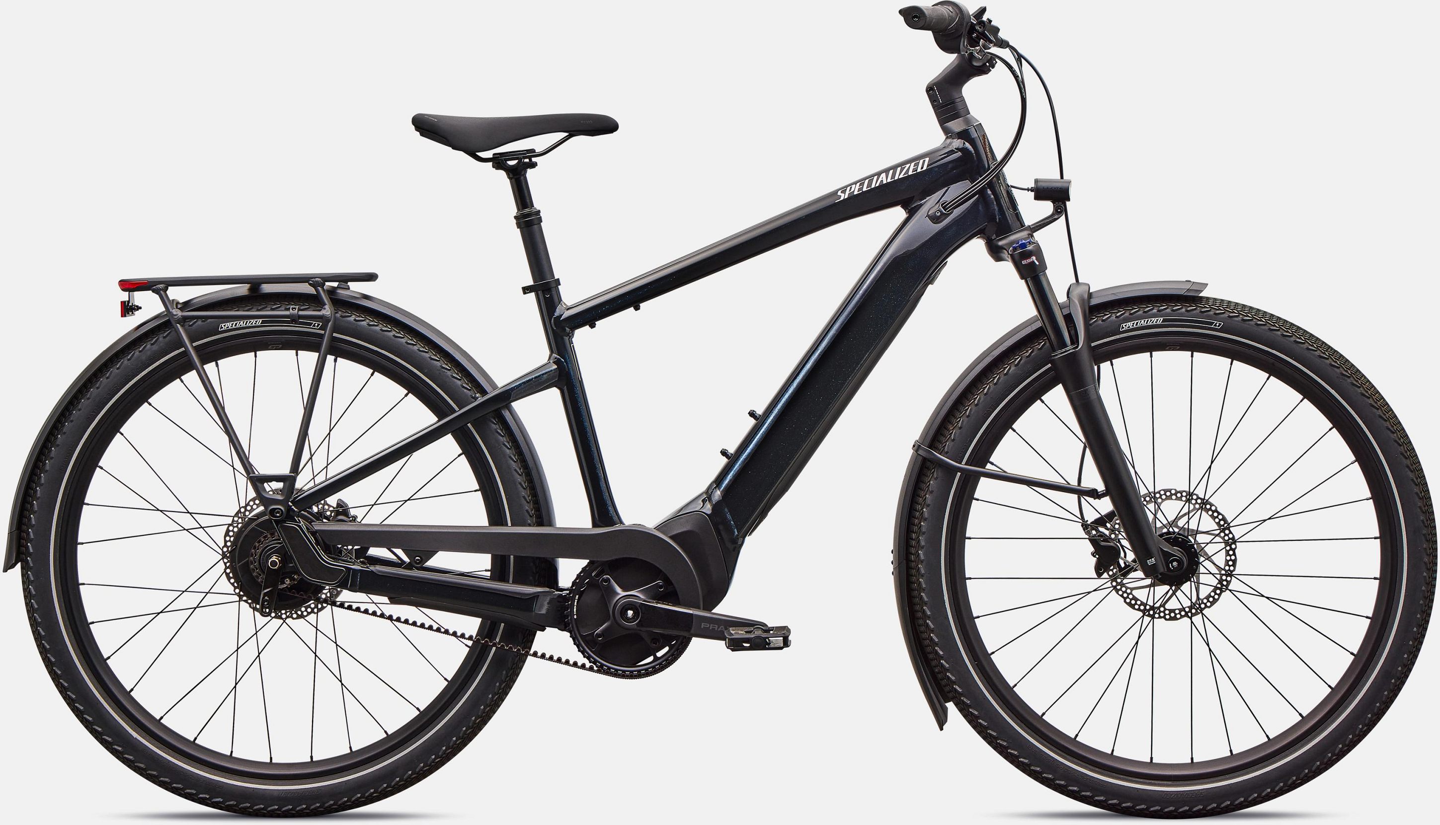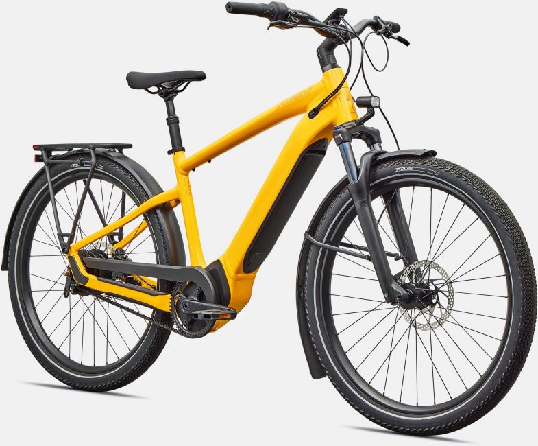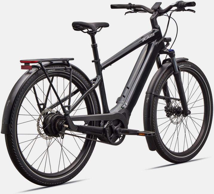 E5 Aluminum, bottom bracket motor mount, fully integrated u0026 lockable downtube battery, internal cable routing, lock and front rack mount, sliding dropout
