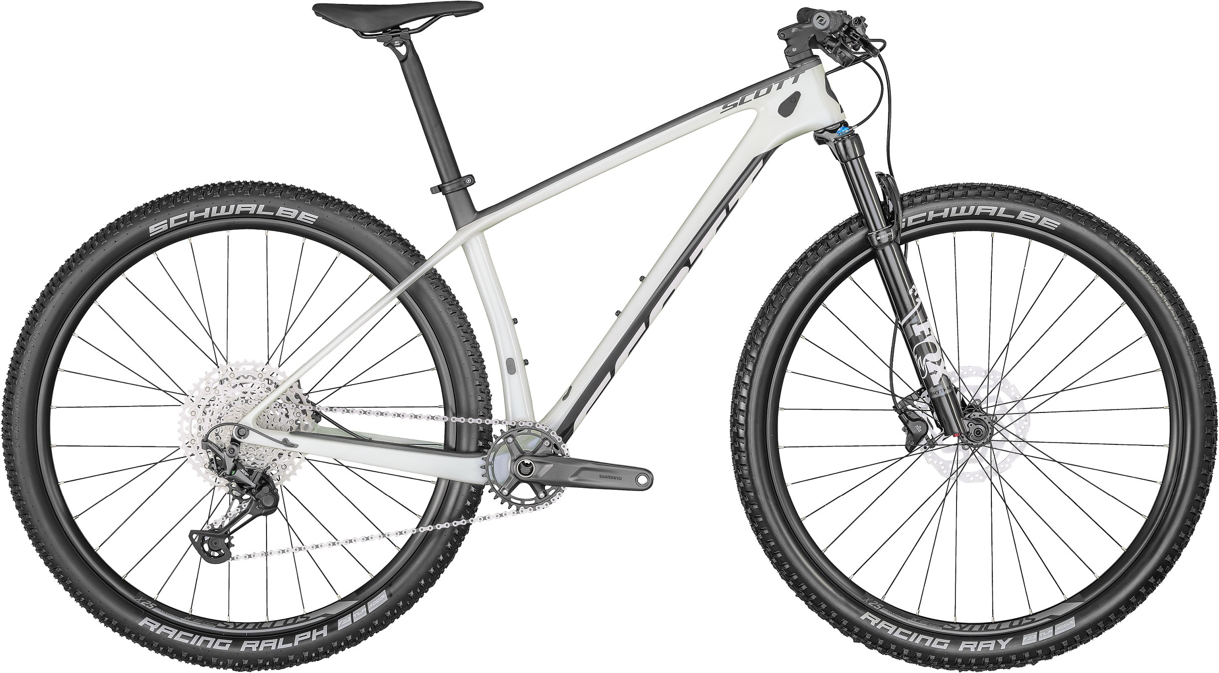 Das SCOTT Scale besticht durch einen superleichten Carbonfaser-Rahmen. Die FOX-Federung, Shimano 12-Gang-Antriebsoptimierung und Syncros-Komponenten sorgen für eine leichte und effiziente Rennmaschine.