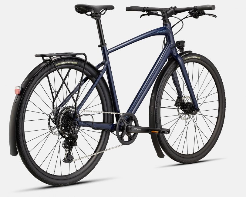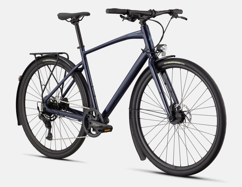 Specialized A1 Premium Aluminum, Fitness Geometry, butted tubing, internal cable routing, flat-mount disc, quick-release, Plug + Play rack/fender mounts