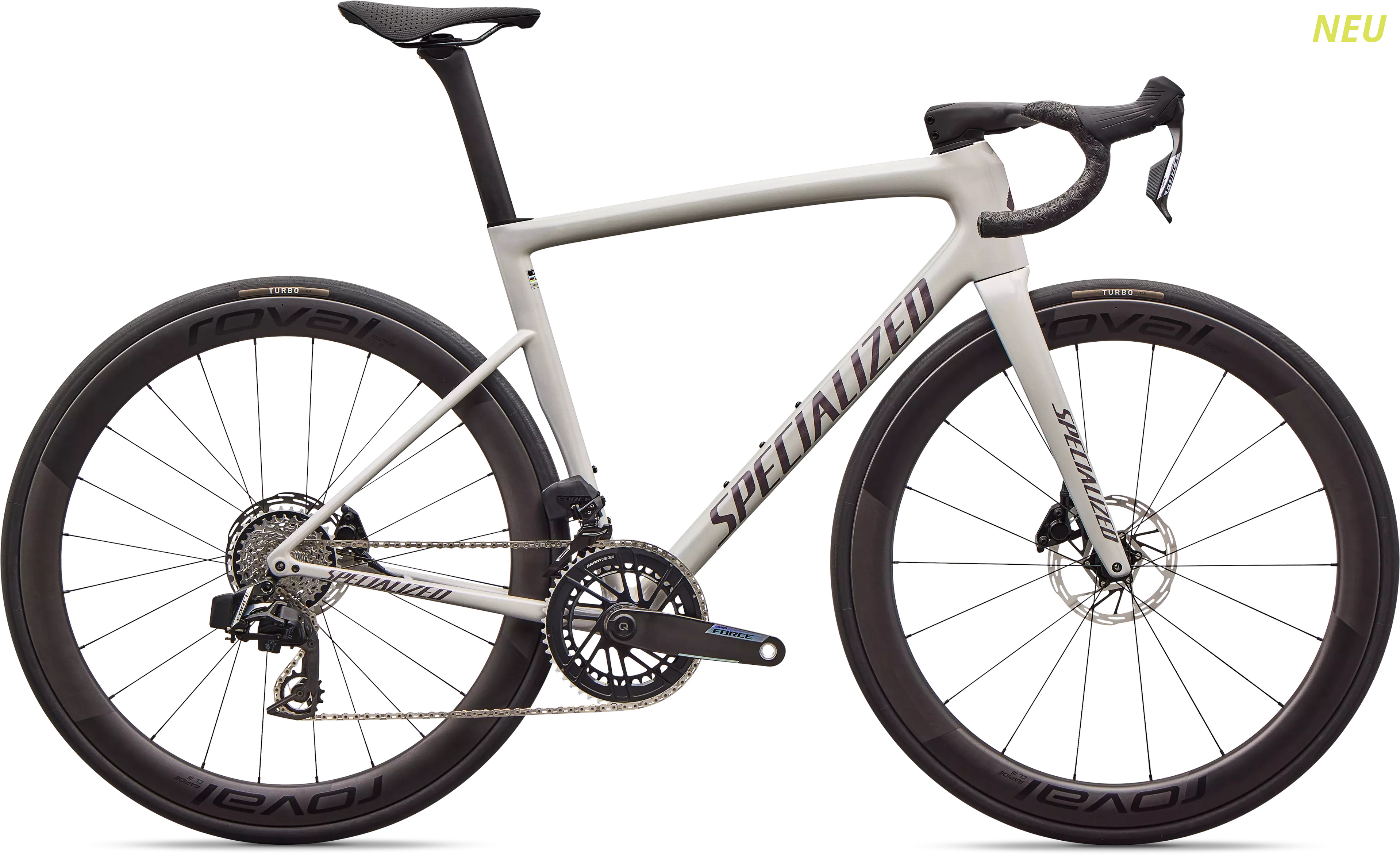 Das Tarmac SL8 Pro bietet hervorragende Performance mit einer SRAM Force AXS Komplettgruppe mit Leistungsmessung, einem tubeless-ready Roval Rapide CL III Laufradsatz und einem Roval Rapide Lenker mit SL7 Vorbau. Mit diesem Build bist du race-ready.